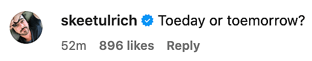 His “Riverdale” co-star, Skeet Ulrich, poked fun at the photo writing, “Toeday or toemorrow???”