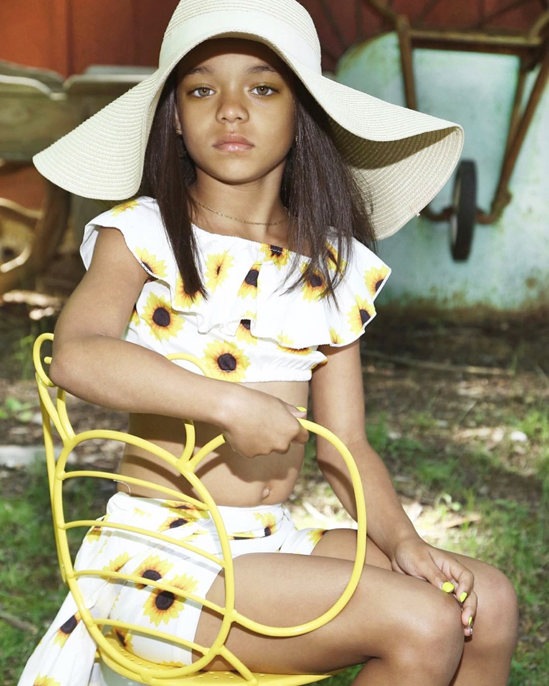 Fans are going gaga over this picture too, which shows the young Rihanna look-alike channeling the fashion icon while wearing a daisy two-piece and oversized hat.