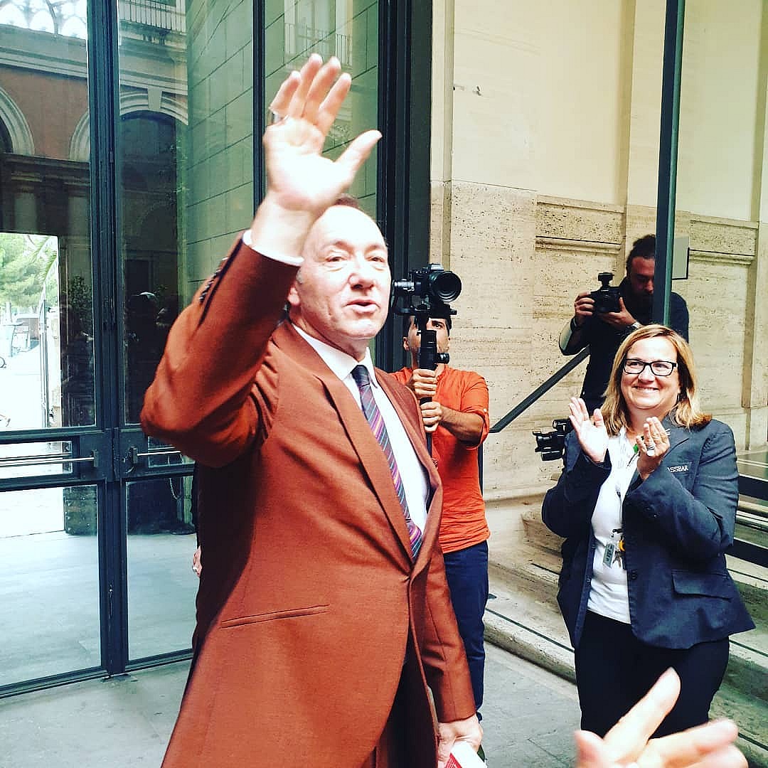 Spacey was seen at the at Palazzo Massimo alle Terme (aka the National Roman Museum) where he performed in front of the “Boxer at Rest” statue. It was his first public appearance since sexual misconduct charges against the actor were dropped.