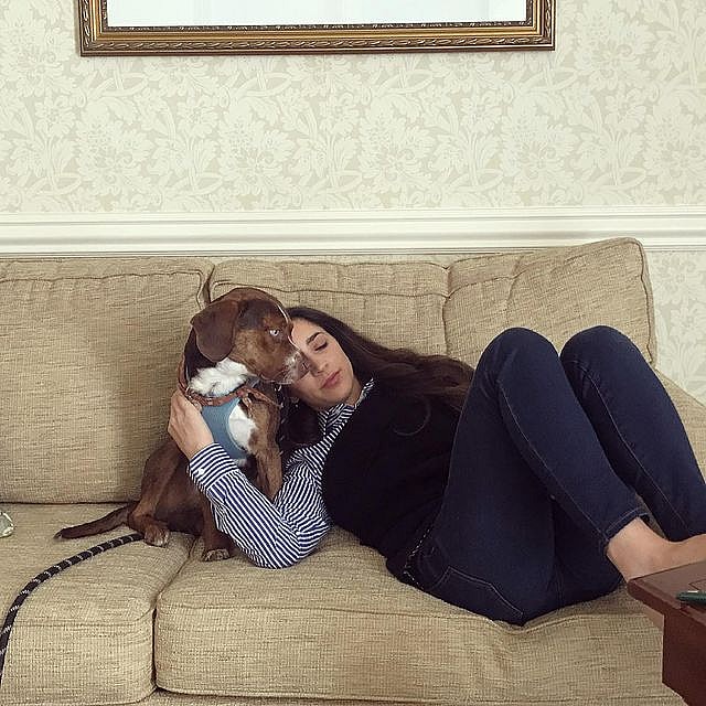 Showing the blue-eyed boy sitting next to his mommy wearing his leash, Aly Raisman cuddled up to her little man who she rescued from a shelter in October. Proving it’s all about the love, the star grabbed Mylo for a doggy-style squeeze. Keep scrolling to see!