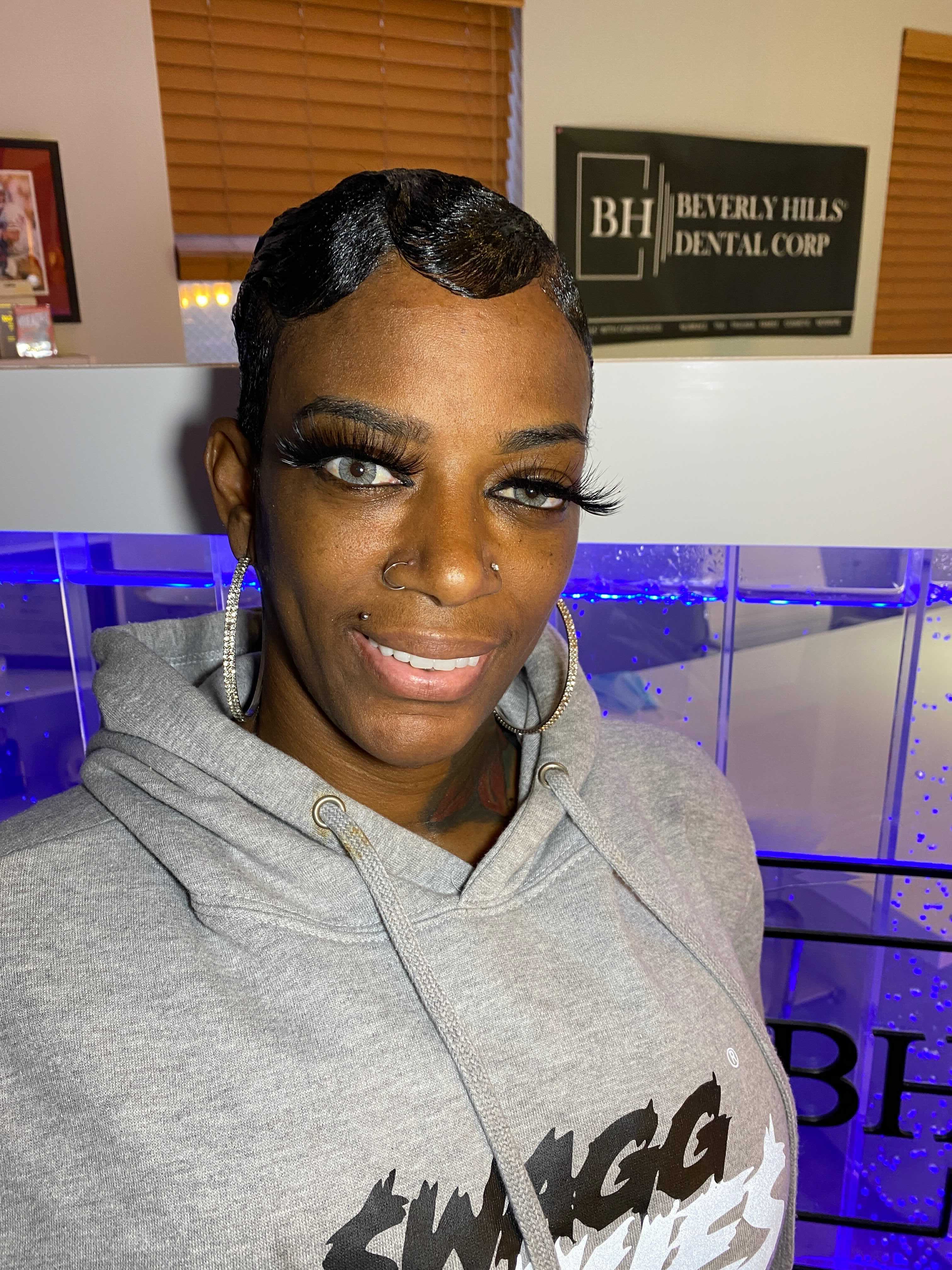 Prior to the teeth work, Tessica underwent a full mommy makeover. Tessica discovered a lump in each breast during a pre-surgery consultation with Dr. Michael Obeng, the doctor who successfully removed the sticky substance from her hair free of charge.