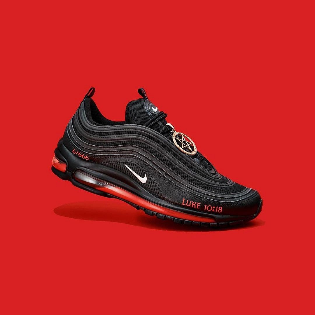 The shoes are decorated with pentagram pendants and have a Bible version printed on the side which references Satan’s fall from heaven. Plus, according to the company, a drop of real blood was added to each shoe which was provided by an employee of the company.