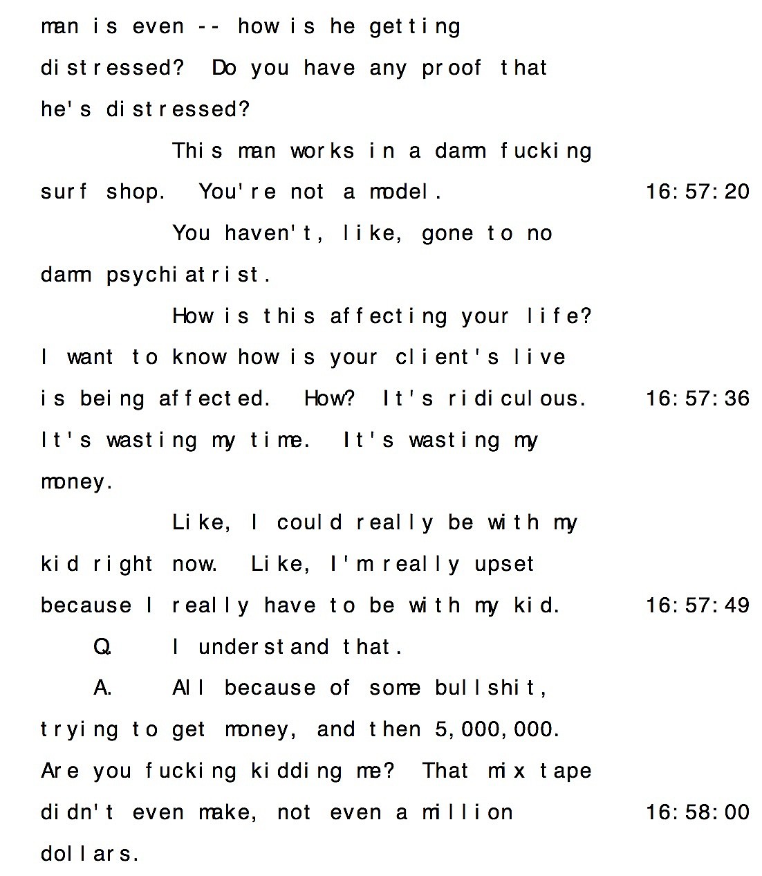A judge recently ruled the singer’s deposition was to be made public and the transcript did not disappoint. The deposition happened on April 19 in New York and lasted for several hours.
