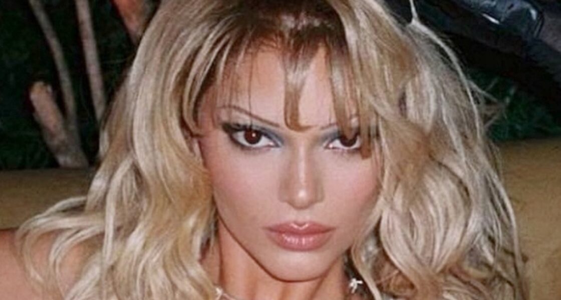 Scroll for all the photos. Dropping jaws in a plunging black leather corset with a strapless finish, Kendall posed seated in one photo, showing off her mile-long legs in black fishnets while flashing her cleavage. Displaying her slim waist as she rocked bouffant blonde curls, the 818 tequila founder even channeled Pamela’s ’90s eyebrows, keeping hers super-thin as she rocked a lined lip.