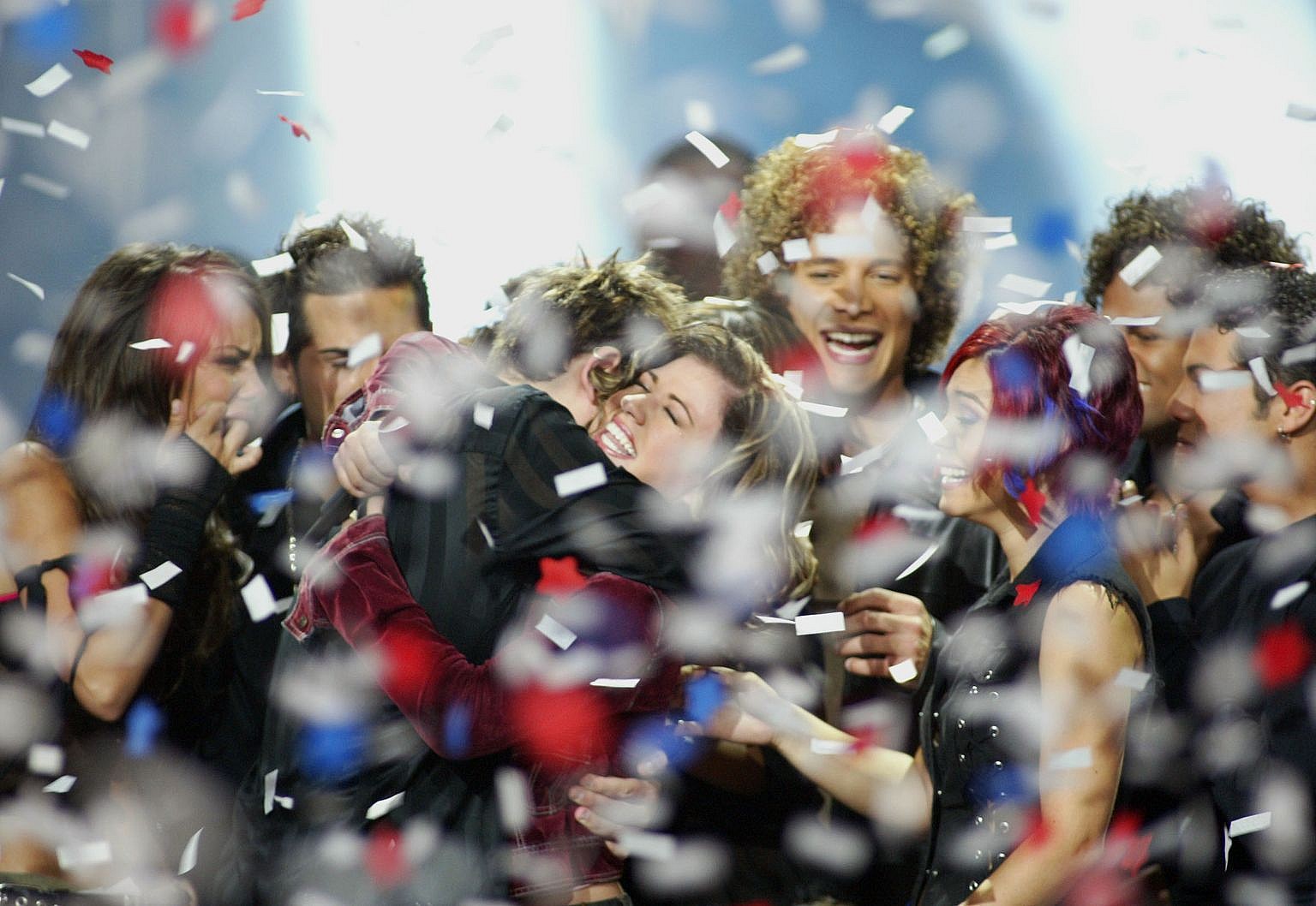 According to sources in the audience, the crowd went wild when they all came out. They shared stories about time on Idol and caught up. The reunion was the first time in years they have all been together.