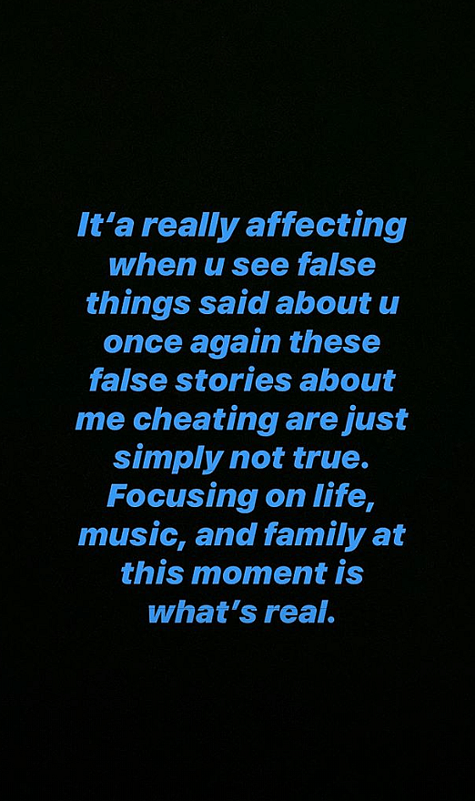 “When u see false things said about you once again these false stories about me cheating are just simply not true,” he stated.