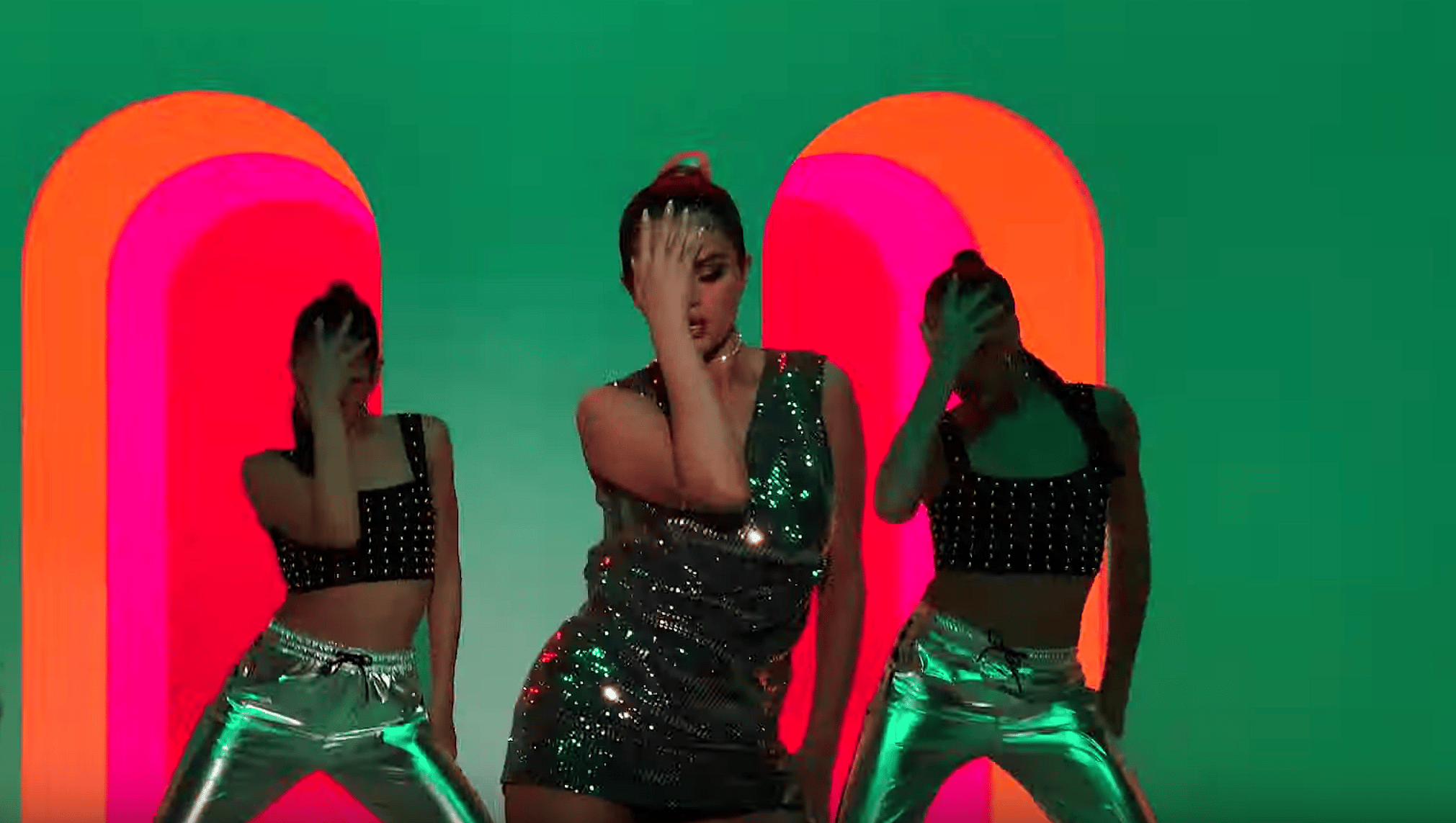 The video features a choreographed dance where Selena’s outfit changes mid-dance move.