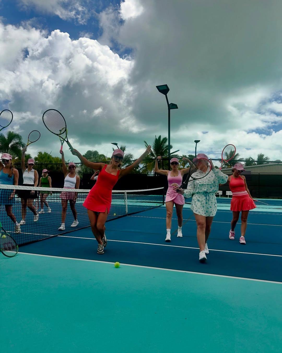 She also shared snippets from the more zen side of the vacay, including a calming sound bath session and a tennis match with her crew.