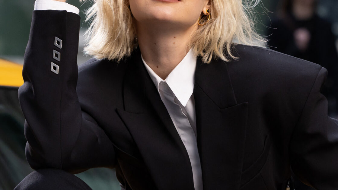 She wore a floral-patterned skirt and gray sneakers. Lea had her beautiful blonde hair wrapped in a low bun.