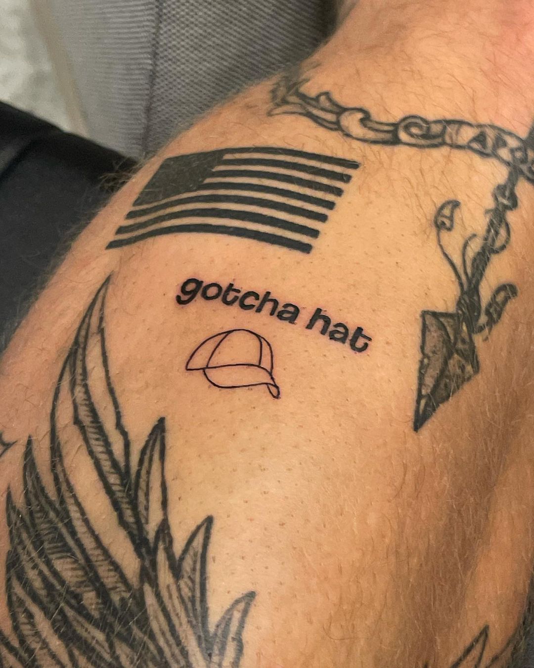 The 'YouTube' star shared the stunning body ink on Instagram which shows off his new trolling tattoo. The new art is on the influencer's lower leg, and simply says 'Gotcha Hat.'