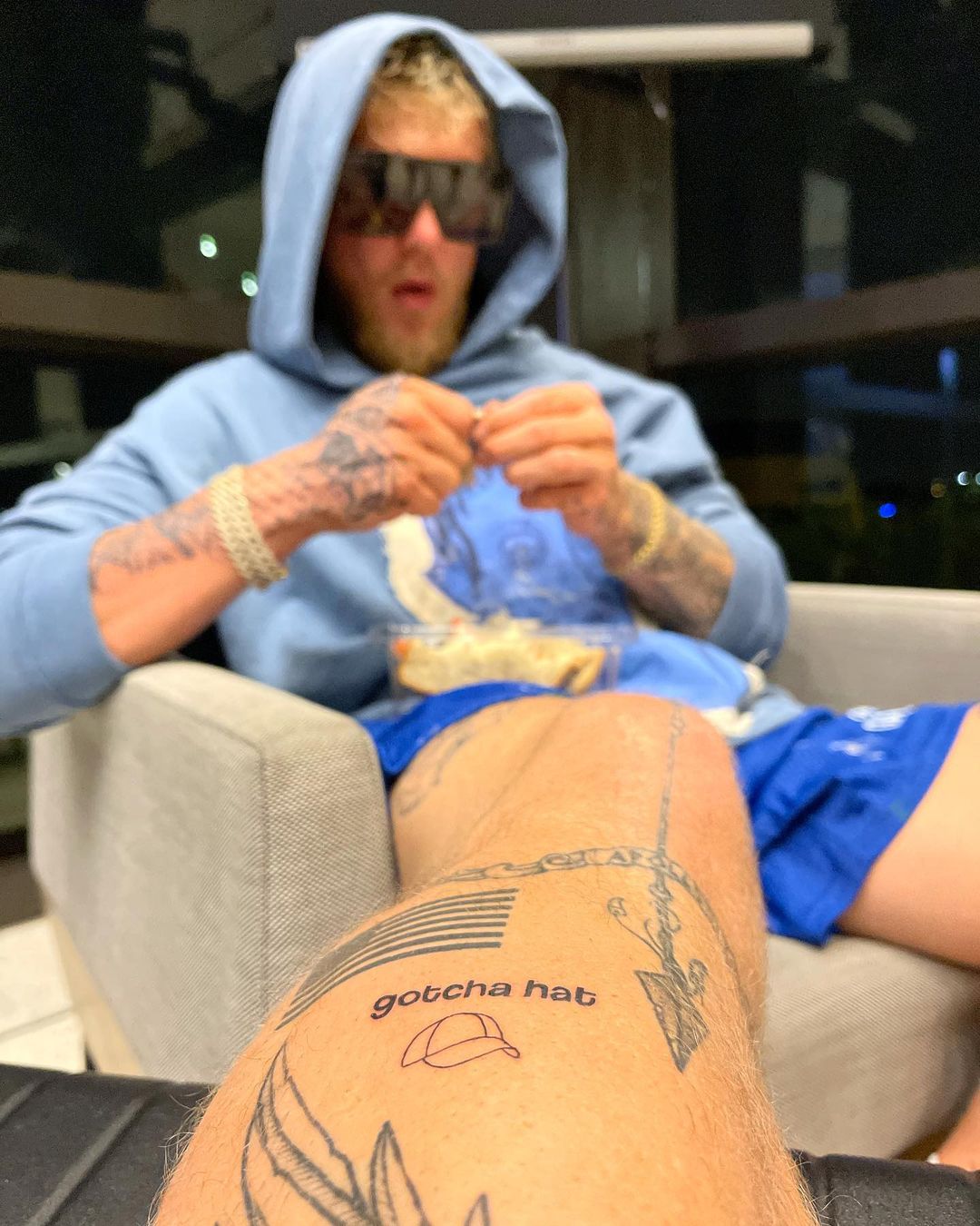 Jake Paul TROLLS Floyd Mayweather By Getting 'Gotcha Hat' Tattoo Following Brawl
