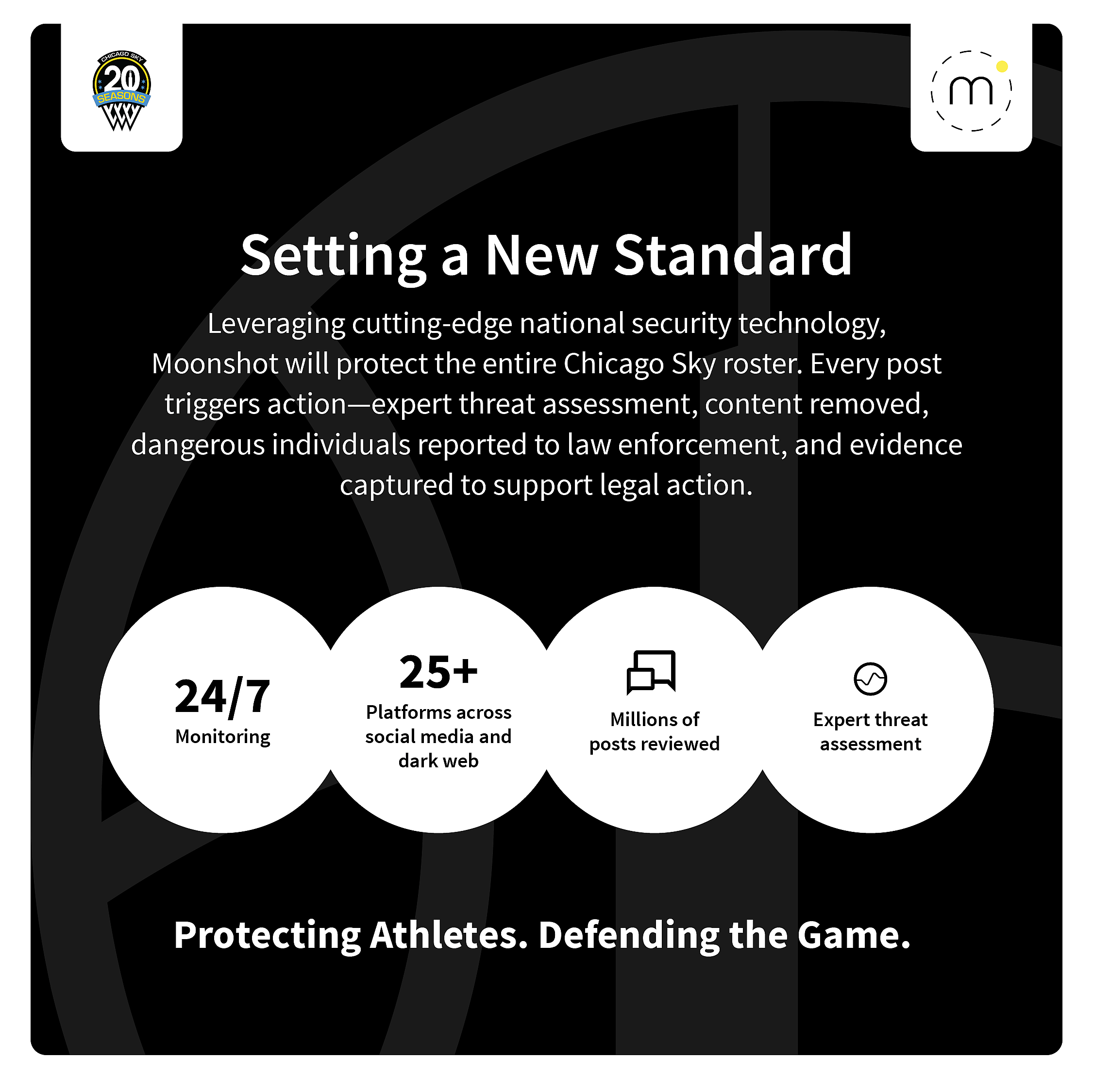 The Chicago Sky is the first team in the WNBA to partner with Moonshot to deploy advanced technology that’s designed to “proactively address online hate, harassment, and abuse targeting athletes.”
