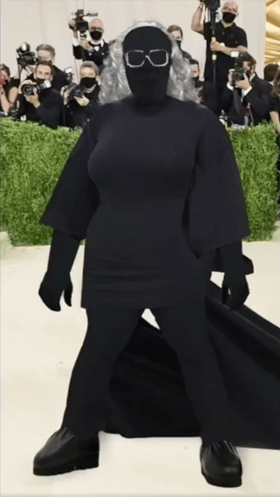 He posted a photo of Kim from the Met gala where she sported an all-black, head to toe Balenciaga frock which covered up her face.