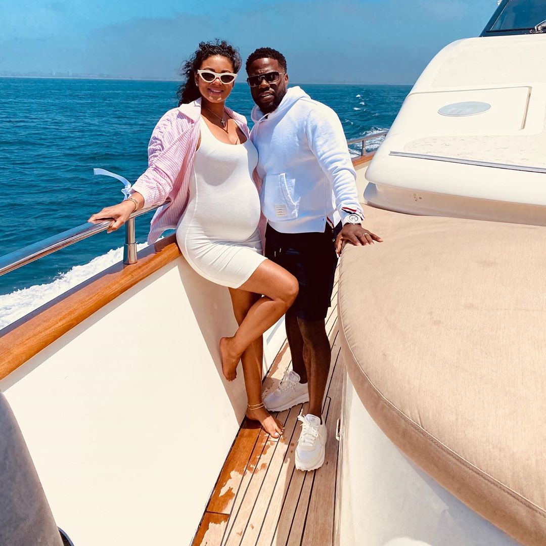 Eniko Hart had her playful pregnant attitude on full display on Monday. She flaunted her giant baby bump in some cute couples photos to celebrate Kevin Hart’s 41st birthday. Eniko looked amazing in a short, white dress and matching shades. Kevin and she were enjoying the yacht life as they acted like they were the king and queen of the world. The actor also wore white, opting for a sweater, dark shorts, and clean, white sneakers. The birthday boy was preparing to puff a big cigar on the back of the big boat.
